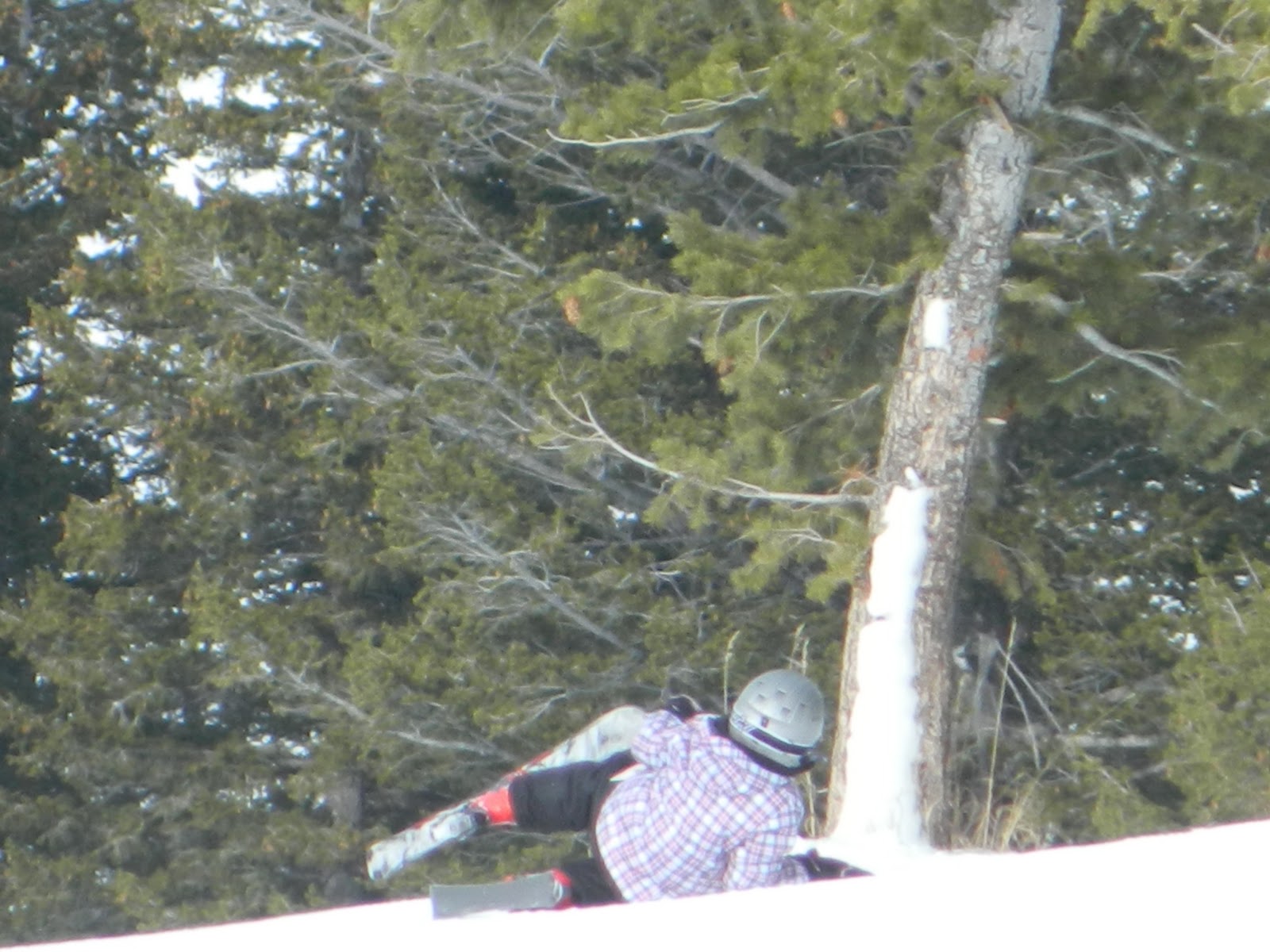 Then the lifts came up, and my baby was airborne. We know all this cause Dave gots him a new camera and shocker, he's become the photographer of the family. Taking like a million shots of this adventure and then even better, stalking through knee high snow drifts, hiding behind trees and etc to get pics of her in action.